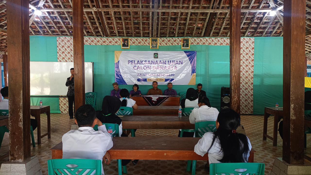 Pemerintah Kalurahan Kebonrejo menyelenggarakan ujian seleksi bagi calon Danarta pada Selasa (02/12/2025), bertempat di Pendopo Balai Kalurahan Kebonrejo. Kegiatan ini merupakan rangkaian proses rekrutmen perangkat kalurahan untuk mengisi posisi Danarta, yang bertugas mengelola administrasi keuangan serta mendukung tata kelola pemerintahan yang transparan dan akuntabel.